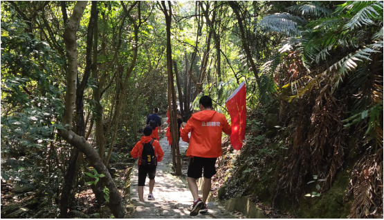 雖然天氣還是比較嚴熱,但這絲毫阻擋不了正朗人攀登的腳步。大家精神飽滿,神采飛揚,一邊欣賞著早已郁郁蔥蔥的山景,一邊揮汗如雨,一步一個腳印的向上攀登。后來,一行人登上了山頂,體會到了通過自己的攀登征服大山的成就感,感嘆會當凌絕頂的氣派。